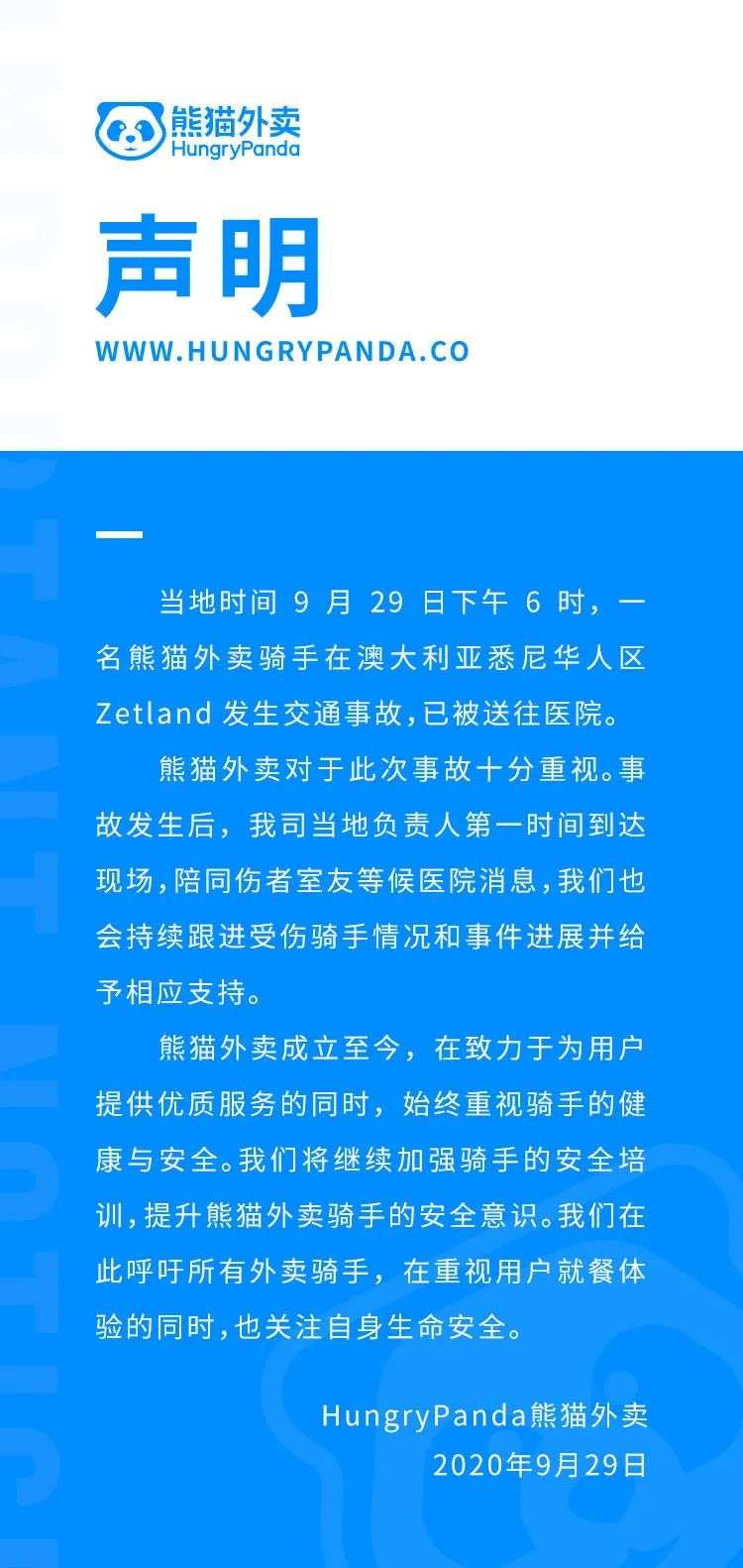 随后,熊猫外卖发布声明,也证实了事故当事人确实为该公司的外卖骑手。