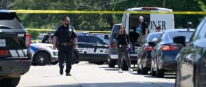 美国特警正在检查被美国特勤局人员击毙的枪手的尸体。