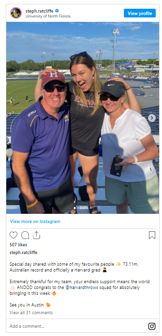 在哈佛大学的最后一年,她回到了美国,成绩不断提高。2022 年在澳大利亚期间,她的最佳投掷成绩为 64.04 米,并赢得了她的第二枚全国银牌,但一年后,她将这一水平再提高 10 米。