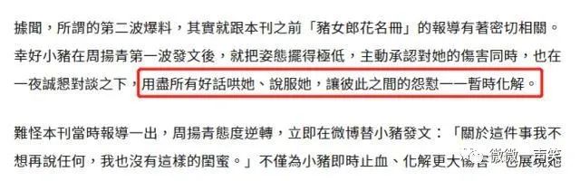 周的确也心软了,发文表示收手,才让小猪没有落得太难堪的下场,台媒称:“不仅为小猪及时止血,化解更大伤害,也展现她身为前女友的心软与众媒体狂赞的原谅高度。”